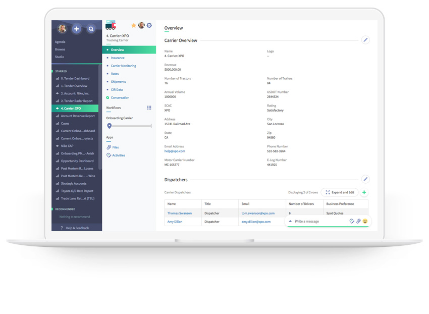 Accounts, Contacts, Opportunities (Transactional & Contractual), Driver Retention, Carrier Onboarding, & Case Management